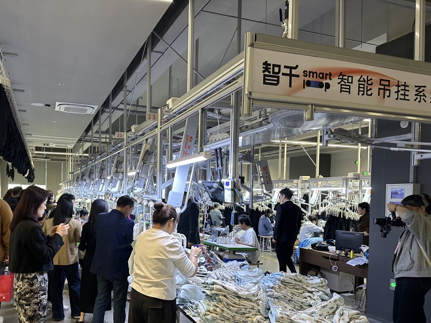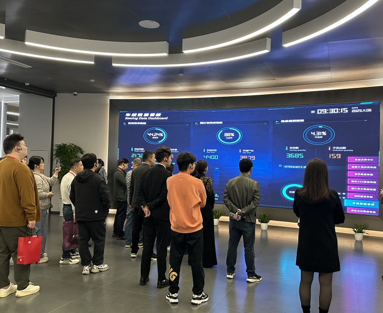 在展會現場,我們按“縫前-縫中-縫后”全流程布置展區,企業可直觀看到3D設計、MES看板、智能吊掛、智能倉儲等環節如何協同工作,從而對照自身流程,識別斷點。解決工廠實際生產中的痛點難點(小單快反、柔性制造、降本增效、降低設備閑置率等)。